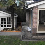 Plaatsen van een aanbouw met een veranda. De aanbouw hebben wij volledig gestukadoord.